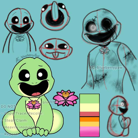 A rejected member of the Smiling Critters, FrogBerry is the only known plush of his character and now lives in a secret hideaway away from the other toys, using the ventilation system to avoid detection when getting daily supplies.Despite being about 3 feet tall, FrogBerry has quite the muscles on him and is able to lift objects or other toys much bigger than himself and often uses this strength in self-defense by throwing things such as heavy boxes at his pursuers.