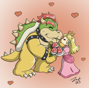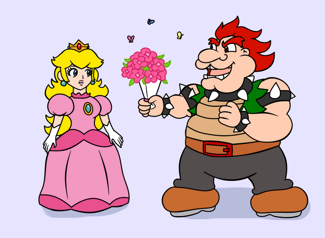 Idk if it is but here is a drawing of luigi disguised as peach whileBowser offers snacks to him