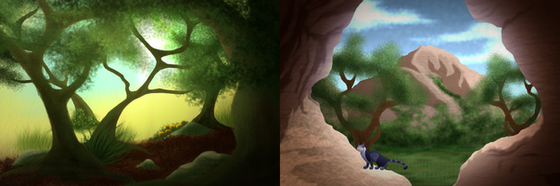 Trying to work on my backgrounds. Have a FireClan scene!Chose Windsong and Canyonstride at random for the cats.