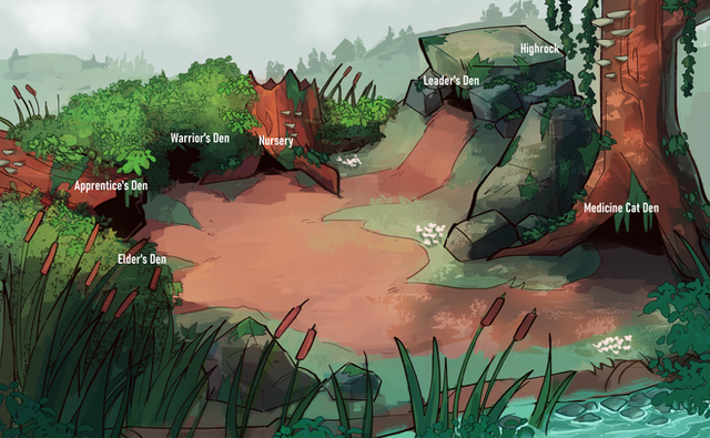 Jess, you knocked yourself out with these maps! It's so cool that you included some of the characters in the clan, plus plus hidden den in reeds(?). Wicked ~!(: