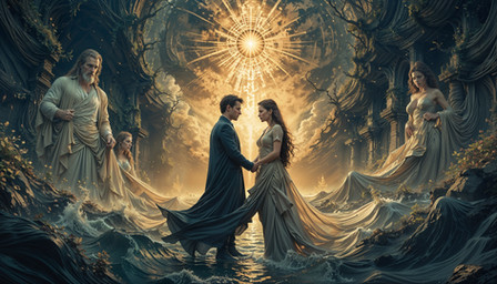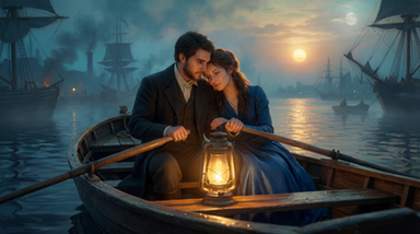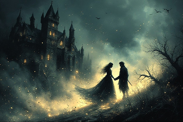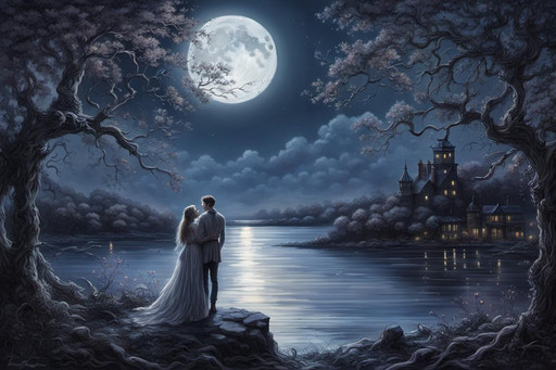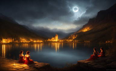 #ai #candles #castle #couple #digitalart #fantasy #lake #lights #lovers #man #night #painting #reflections #ship #water #woman #aiart #stablediffusion #lightbeam #rays #romantic #romanticfantasy #sailingship