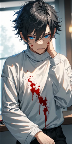 #digitalart #originalcharacter #horror #characterdesign #portrait #blood #longhairedmale #longhairedman #malecharacter #redhair #yandere #ai_generated #ai_generated_art