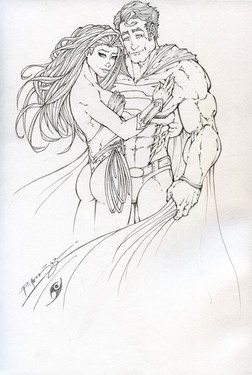 wow. this is a gorgeous drawing..I really like the way you did cap!! He rings true. you have an interesting way and mannerism of representing his waist and hips..clever. It's unique and I like it. I could never draw like this, but the only things that stands out to me about WW is the way her arms are looks a little stiff or posed while caps looks very natural. Perhaps the arm closest to her breast looks a little unnatural compared to the naturalism you displayed with drawing cap. But, it's a fantastic drawing and I commend you! held my attention long enough to study and I have no attention span