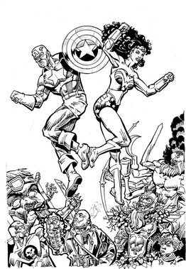 Theres some problems with cap america's anatomy....the muscles on his forearm are in the incorrect location. His arm appears twisted in regards to his elbow...his lower forearm and hand should be turned counter clockwise. Also, the lower half of his body is way too feminine....you gave Cap too much booty.....and wonder woman's looks like she broke her neck. Maybe her head should be tilted towards the viewer.