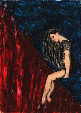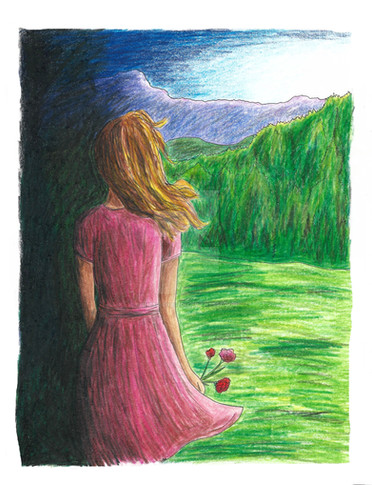 This picture shares a main character in my first novel "The Dreamer's Nights," and is the cover image of that book. Anya stands on a precipice contemplating life, while the sun sets again. From night to night, she never sees the daytime.