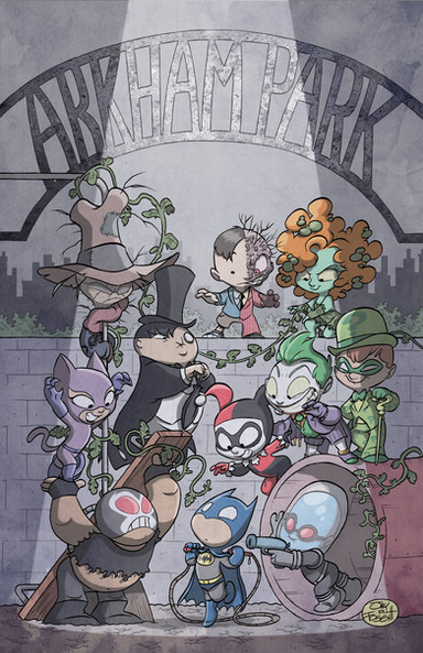 I'm picturing the character Batman perched in the hanged ceiling overhead of the villains, smirking whilst eating a snickers... nice use of shading and lighting in the piece my man. Top shelf patrickballesteros, top shelf indeed.