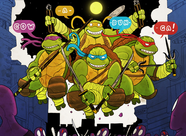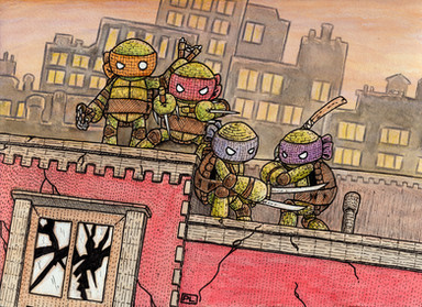 These heroes in a half shell are hoping to get a win out of this situation. This is my newest print that will debut at Comikaze Expo in Los Angeles this weekend Nov 1-3. I will be hanging out with mighty Dave-Wilkins and geeshin so check us out at booth 1244 and say hello! More info on my piece can be found here .Related content