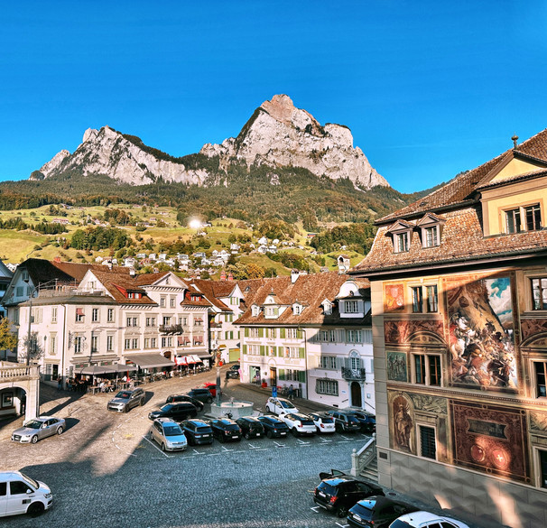 Très jolie prise de cette belle ville de Gruyères Il y avait pas beaucoup de monde, c'est pas évident de nos jours c'est toujours bondé ici