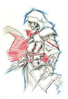 I'm currently working on a massive peice for Assassins Creed Revelations, this is just a quick sketch of Altair who will be placed in the far background of the artwork. I just wanted to post him up nice and big first, didn't want to let it go to wasteI can't wait to show you all what I'm doing with this! Basically it's a big pile of action in one pic