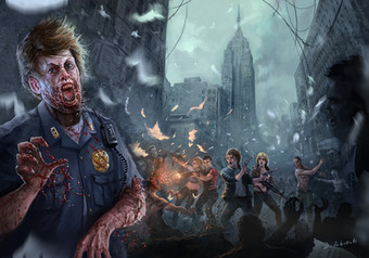 This artwork is amazing. I love the cartoony look, and the expression on the survivor's face is priceless.