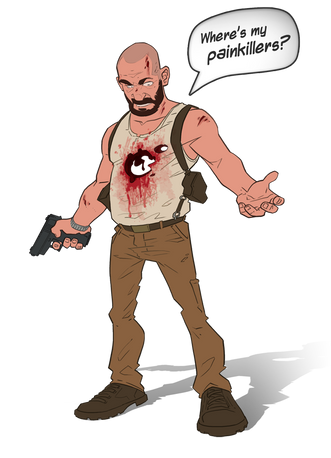 The pose of the main character works, and the coloring and textures are all working in harmony.