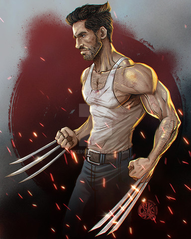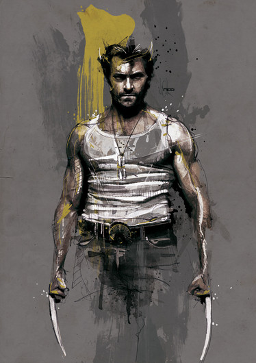 So I decided to go all the way with the sketch I did of Wolves, and for a change I thought I'd keep the original sketch as the lines for this piece, instead of my usual clean/crisp lines. I think it keeps that gritty grunge feel that a Wolverine picture needsGood old Hugh Jackman, the legend himself! Apparently they're doing another Wolverine movie... I think.. But hopefully.