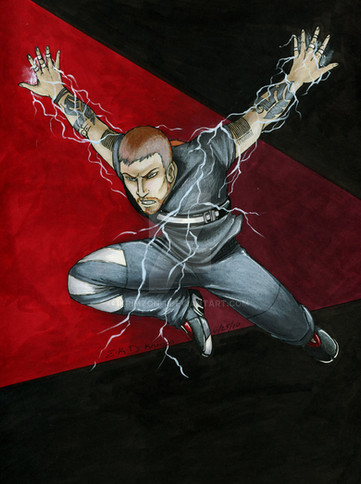 love it. the lightning gives off a real impact of power. the dead reaper being electrocuted is a very nice touch. the lightning is very well drawn, I've tried to draw it, and it is hard. the other reapers seem a tad bit tacked on. the flow of the picture's is kind of...stopped by the 2 reapers in the background. especially the reaper right behind Cole. but I love that you used lightning to kind of frame the reaper aiming at you. the anatomy is amazing. Cole looks like he could be real. his pose is amazing. great design.