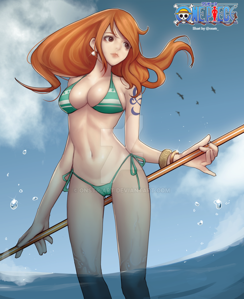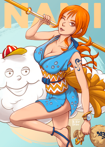 Lol Sanji and Luffy in the background XD BUT HOLY, this painting is awesome! Nami looks so detailedddd and fluffy fluff Zeus aaaa Though the composition feels a bit cramped, maybe you could've left a bit more empty space above her head and make sure both her feat are inside the frame But I love the colors (I'm a color freak haha )