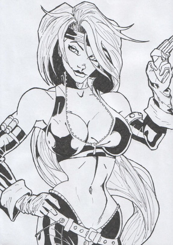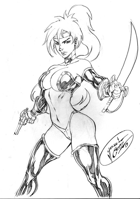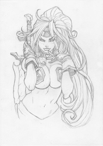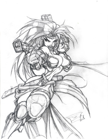 You gotta love Red Monika of Battle Chasers... I sure do.This is a page from my latest sketch book. I sold the original at the last show. I was sad to see her go, but I know she went to a good home.