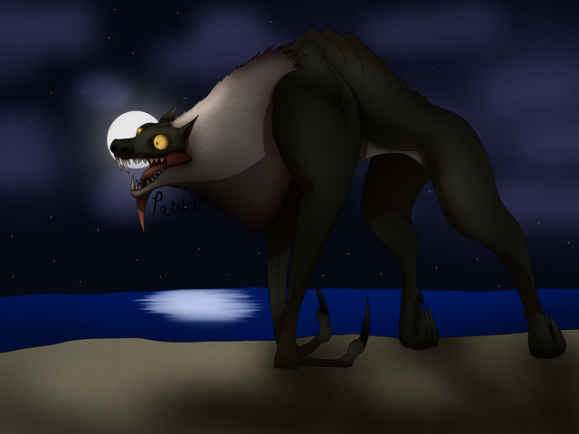 Physical Character Traits: Dark grey fur, Thick grey fur around his neck, Red and Green eyes, and Black claws