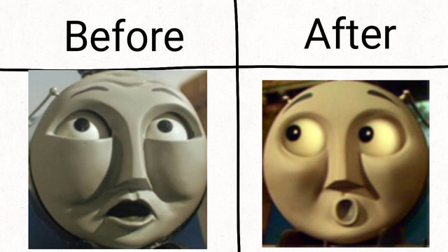 This a comparison of Gordon's rage face. The one on the left is my one and the one on the right is the one as seen on TATHPRelated content