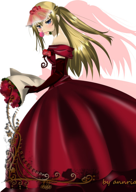 Nice job. I really despise CLAMP's style so it's nice to see your version of Chi. Her dress and veil are absolutely gorgeous! Some things you might wanna try for the future: using some unsaturated purple/brown for shading skin, it will give a lot more depth. And maybe making the hair a little less detailed or at least less perfect looking. I dunno, it just seems a little line-y.