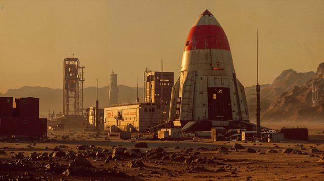 1950s type rocketship with an AI background, and some postwork. WIP.Related content