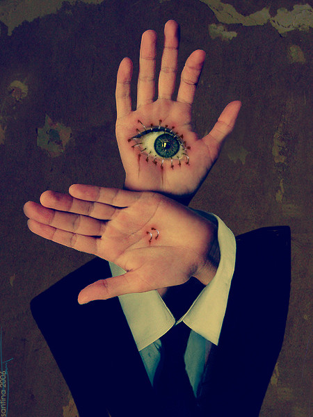 Wow...this is so surreal, reminds me a bit of Dali. I like it, especially the little hands that come out the fingers.