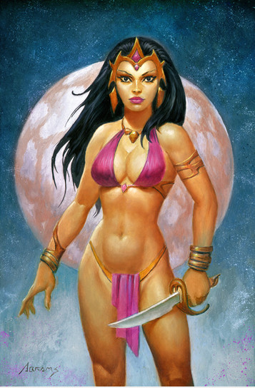 Gorgeous, although aside from the gauntlets the rest of her clothes look like they are body paint. (the leggings more than anything else the sleeves and parts of the breast guard have shading that gives the ridges depth, although the straps on the hips look flat to the body and the leggings look entirely like they are painted on (except for the right leg top, but that took a moment to notice at the scale on screen).
