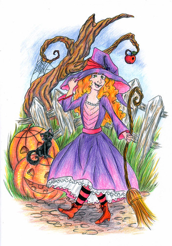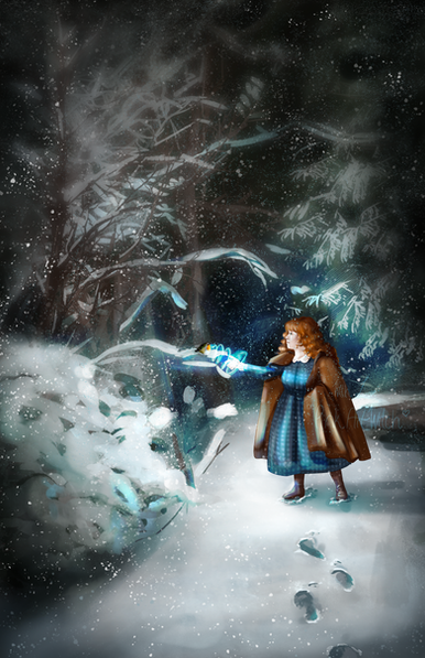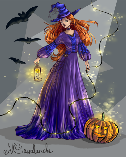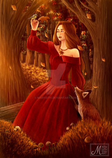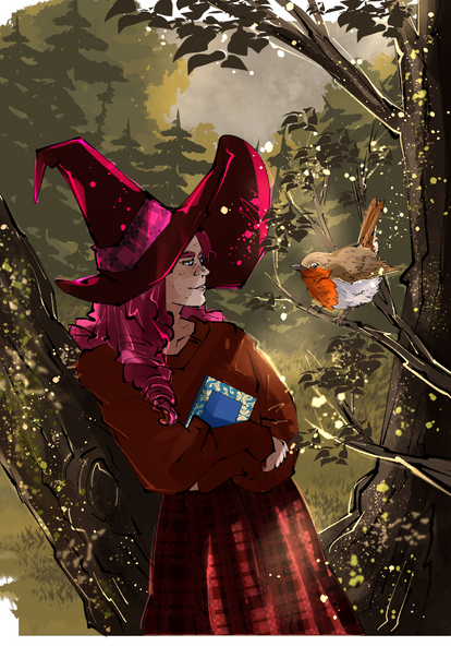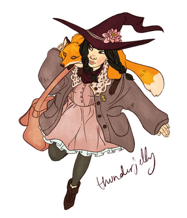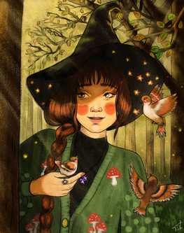 #digital #forest #fox #illustration #magic #witch #woman #art