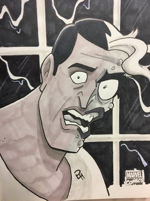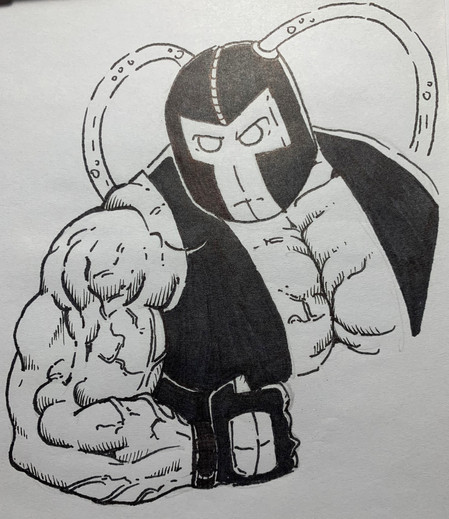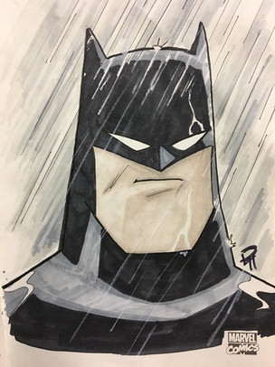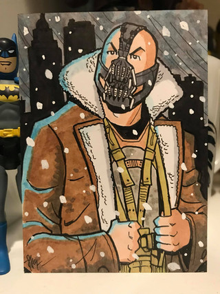 Bane Commission Part 3.The third and final Bane Sketch Card as part of a 3 part commission. The main connective tissue being the sky in the background ๐