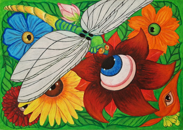 Ilustração feita em papel técnica mista com caneta hidrografica, caneta esferográfica e lápis de cor aquarelável.Illustration made on mixed media paper with felt-tip pen, ballpoint pen and watercolor pencils.