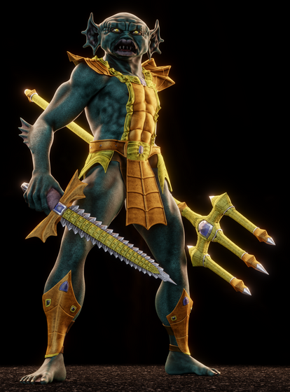 A shot of my fan-art model of Slithe rendered with a little subtle toon-shader materials.Created in MakeHuman and Blender.