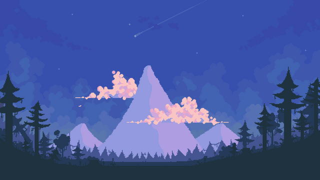Hi! I have been working on this background for a little while every day for a long time. I wanted to try aseprite's dynamic brush tool and this was the result.