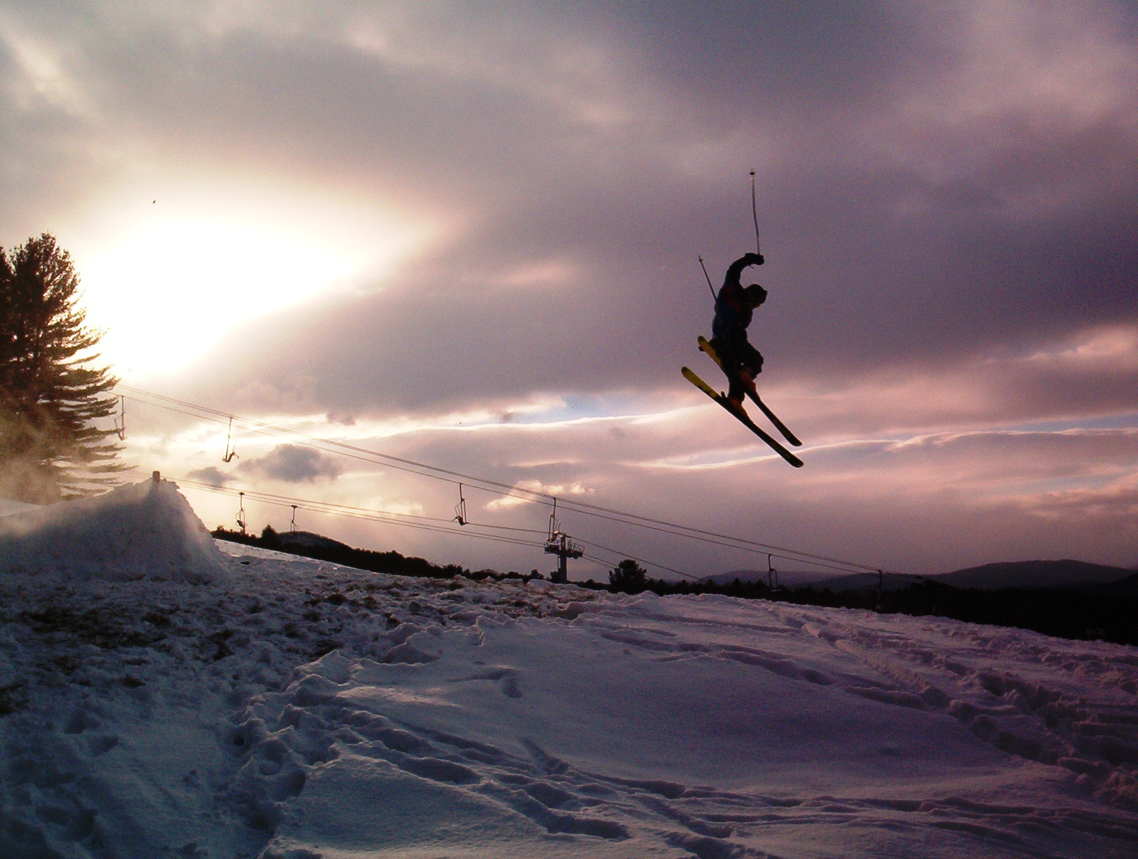 What an absolutely fantastic action shot! The sky looks gorgeous as well! I would like to see a close-up of the skiier perhaps in a second shot, maybe flying against the sky and getting the ski-lift out of the shot so it's not as distracting, but other than that, a nearly perfect shot!