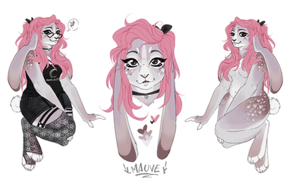 Everything is flat colored and pretty straight forward so color picking should be relatively easy. The only eyeballing you gotta do when it comes to coloring is the soft flush of pink in her inner ears. The blush and lip shine was just an added touch to pretty it up, but feel free to include that in her color scheme.I imagine she likes to wear comfortable, baggy clothing or cute dresses for the most part. She's not too fond of showing off her body or wearing fitting clothing but is open to it.