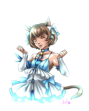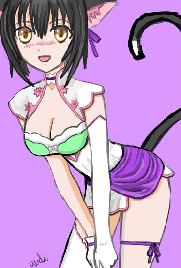 We were picking outfits featured in Project Diva X since I've been playing it here and there while impatiently waiting for Future Tone to release. I wasn't very fond of the newer outfits so I chose to draw her in a returning one in the game, though I picked new outfits to draw Luka and Len in! I just... Really want an excuse to draw some anime tiddy... It's the Xiao-Mei Costume and it CUTE.
