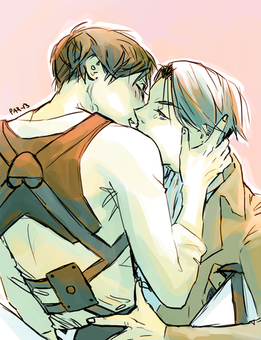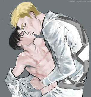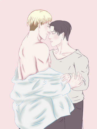 Ahh I just wanted to do something fluffy but I got ahead of myself and colored it a bit. I've been drawing a lot of this ship and the reibert (reiner x bertholdt) recently. I love them both a lot, and them as a group.I referenced my own bathroom, hence the reason it looks modern. But historical accuracy shmistorial accuracy.