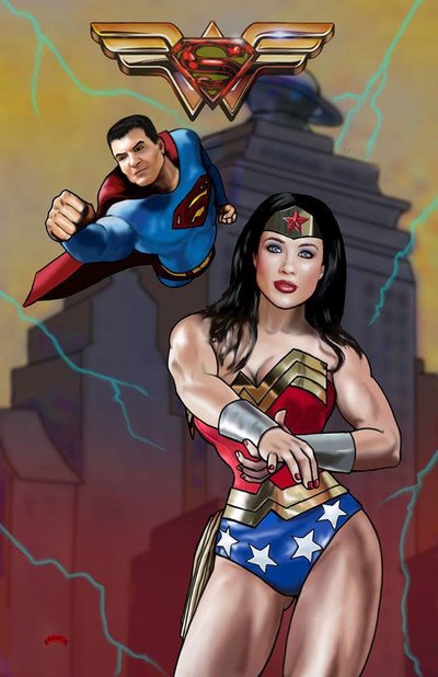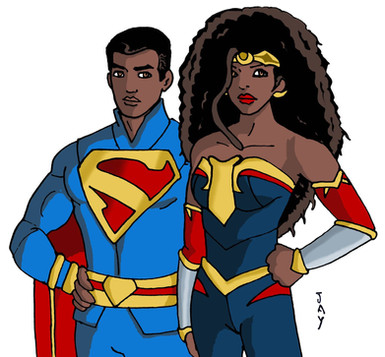 A commission for my wonderful friend, Double AShe requested an illustration of Laz Alonso (as Superman) being rescued by Gina Torres (as Wonder Woman). I had a lot of fun with this one!
