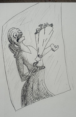 This was made a couple years back with three colored pencils: Blue, Yellow and Red. I mixed them all in different amounts to get the whole picture.