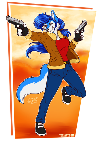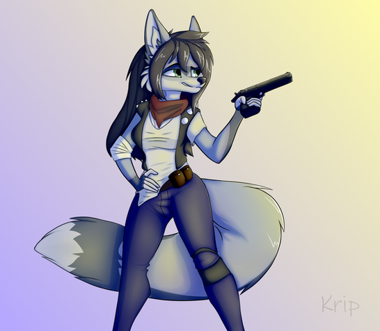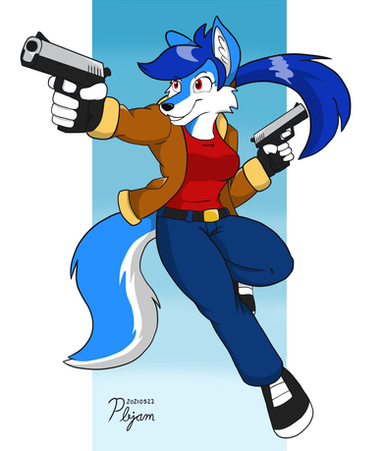 #blue #furry #gun #pistol #rikku #wolf #wolfess #pbjam