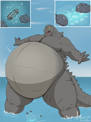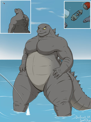 Patreon art reward made by Userpage of Jon -- Fur Affinity [dot] netIn a particular episode where HB Godzilla was shrunken down, it was stated by the Captain that if HB Godzilla stays out of the water for too long, he becomes weak, so it's important for him to stay hydrated!