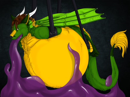 Art made by www.furaffinity.net/user/jon/Commission of Pink Rathian from Monster Hunter struggling against some slime, but the inevitable slime inflation will soon start >:3