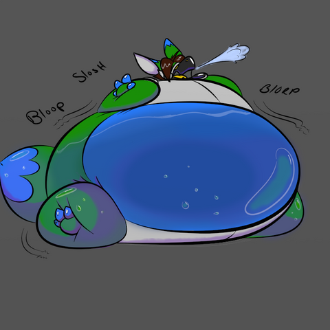 Commission art made by www.furaffinity.net/user/jon/At long last, the pink rathian finally exploded, and the slime won the battle in the end.