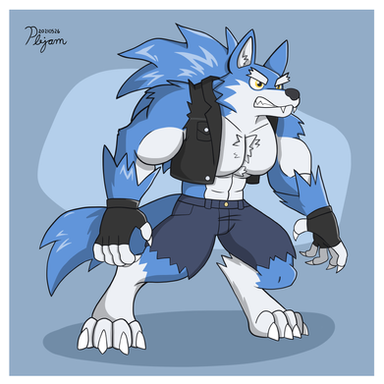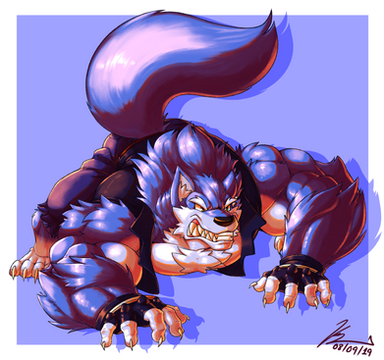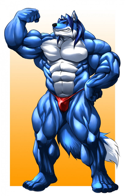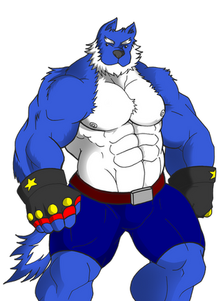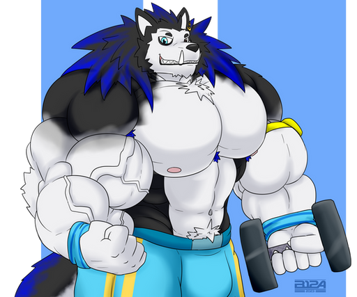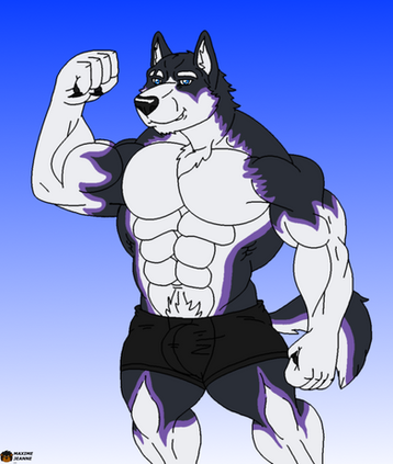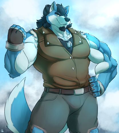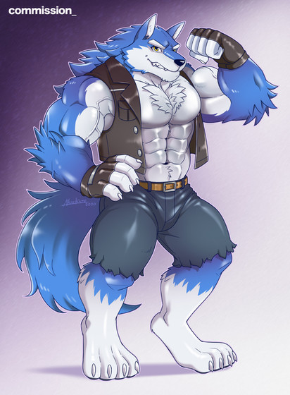 Commission art made by www.furaffinity.net/user/akai.…Sabur showing off his muscles. They aren't *just* for show as he also packs a mean punch