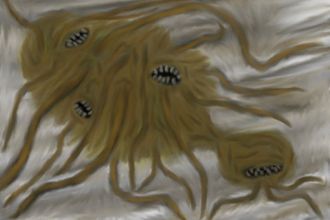 What began as a sketch of pickled plums evolved into these suspended fleshy brain-like blobs.Related content