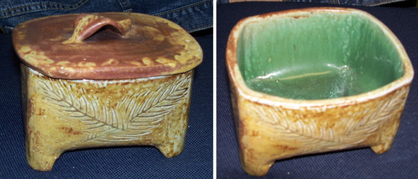 Love the shape! The lid functions are a bowl as well, yes? And the mix of the green with the warm brown/orange is really great!