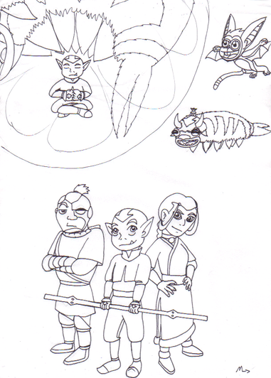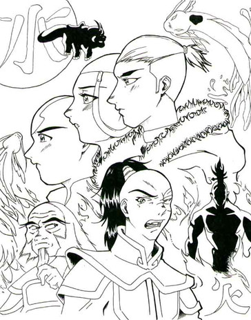 UpDate!!!! [link]Ok this a big piece for me, yes its more Avatar fanart but I put a lot of work into the composition and layout. The Problem is my coloring skills are archaic at best, so I would like to put this out there for anyone out here in Internet Land, for any one who thinks they could touch this up, run it thru Photoshop and kick it up a notch with some colors. If you are interested in doing so let me know, I would really like to see this piece with the greatest colors possible.