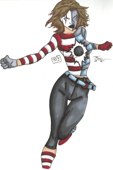 Second, a question: What's her crime-fighting M.O.? For example, the Mime patrols the streets looking for muggers and rapists and whatnot and then takes them out before they can do the deed (what I call a "cape" superhero). The Fowl, on the other hand, does research and detective work to find his targets after they've already comitted their crime and punishes them for what they've already done (what I call a "mask" superhero). How does Eclipse do her thang? Is she a mask, a cape, or something in between?