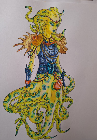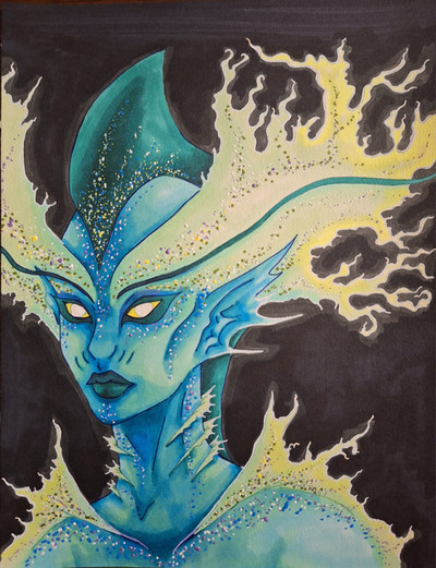 A Mermaid of sorts, she started off as a plant based creature but as things progressed morphed into what you see here. Another Colored Pencil piece, again my markers are all running dry and I didn't think I could get the colors I wanted out of them. I drew this while watching Face Off on SyFy which just so happens to be my favorite contest based show.Related content