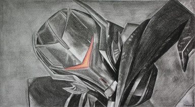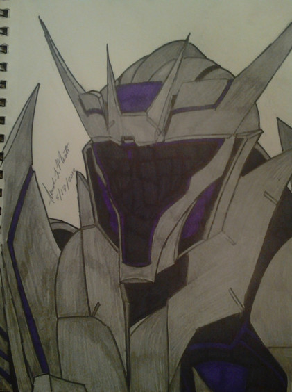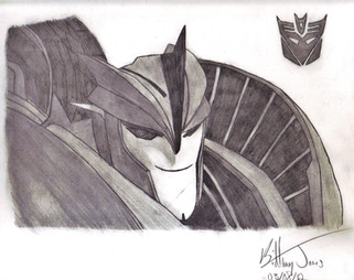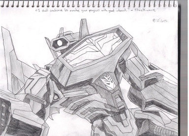 Breakdown was the second suggested Transformer I should draw in graphite pencil so here he is. I miss this guy so much!! His eye and the yellow & red areas on his eye patch were done in marker.Reference (Top Right Image).
