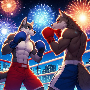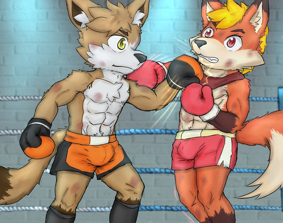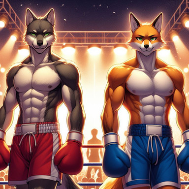 #anthro #boxer #boxing #fighting #fox #furry #muscle #wolf #ai_generated #ai_artwork