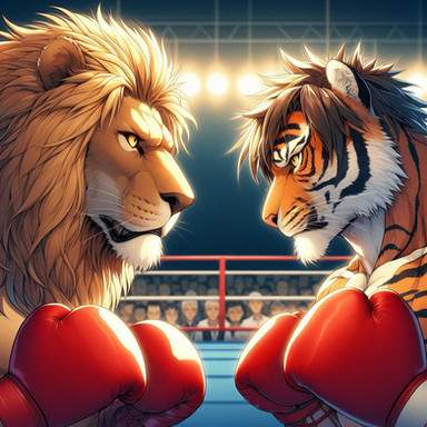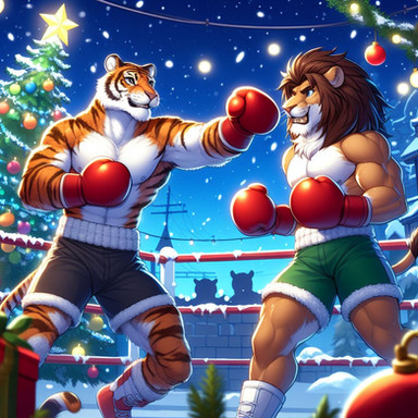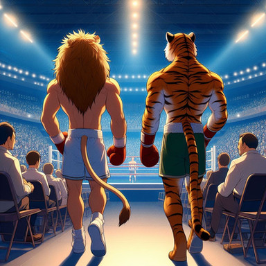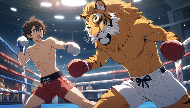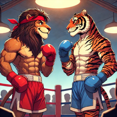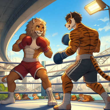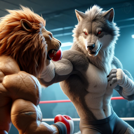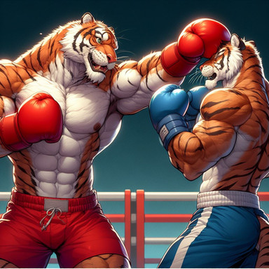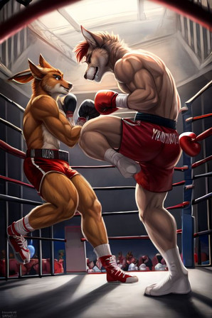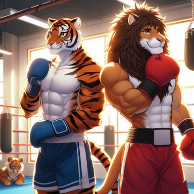 #anthro #boxer #boxing #fighting #fox #furry #lion #muscles #tiger #wolf #furryboxing #furryboxer #ai_generated #ai_artwork