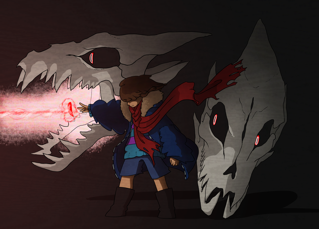 But you said that sans was actually the gaster blaster and it looks like his spirit is what's on top of it in the cloak